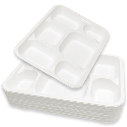 50 X Deep Bagasse 6 Compartment Food Tray PLATE