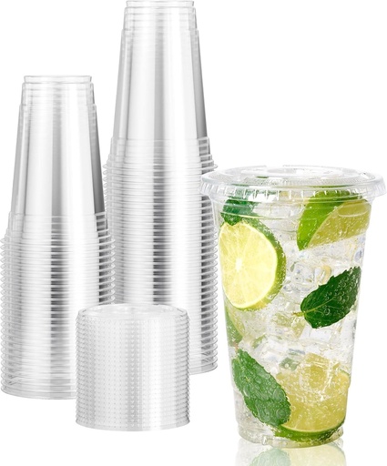 100 x 591ML/20oz with Clear Flat Lid for Smoothie Cup PET (98mm)